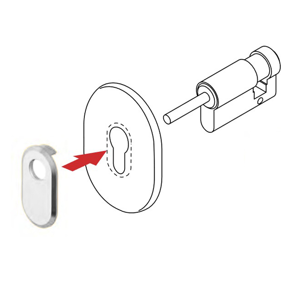 Щиток DISEC A2427 – це декоративний елемент, що призначений для декоративних накладок з отвором під циліндр стандарту EURO DIN. Він використовується для того, щоб створити спеціальний отвір під шток на який кріпиться вороток циліндра.