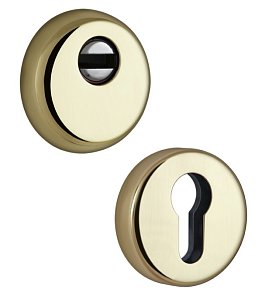 Протектор (або броненакладка) є обов'язковим аксесуаром вхідних дверей для захисту Вашої оселі. Оскільки їхньою найслабшою точкою є замок з серцевиною, то дуже часто злочинці намагаються потрапити всередину приміщення просто вириваючи їх. Для протидії такому методу взлому і потрібна броненакладка. Дана модель DISEC BD54 DIN ROUND встановлюється на вхідні двері разом із замками і серцевинами стандарту EURO DIN. Це захисний протектор з 3-м класом зламостійкості. Виготовлений із гартованої сталі. Монтується накладним методом та може бути втопленим в накладку МДФ спеціальним кільцем (докуповується окремо). Протектор захищає від фізичних та силових методів злому — свердління, виламування та вибивання. Висота (або товщина) протектора складає 13 мм, діаметр - 54 мм. В кольорі “латунь PVD” найкраще буде доповнювати двері світлих відтінків з бархатистим і соковитим покриттям - тим же шпоном вишні або груші.