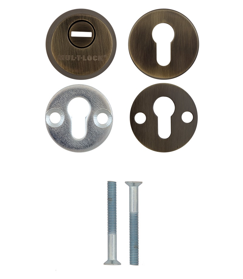 Протектор (або броненакладка) є обов'язковим аксесуаром вхідних дверей для захисту Вашої оселі. Оскільки їхньою найслабшою точкою є замок з серцевиною, то дуже часто злочинці намагаються потрапити всередину приміщення просто вириваючи їх. Для протидії такому методу взлому і потрібна броненакладка. Дана модель MUL-T-LOCK SL3 встановлюється на вхідні двері разом із замками і серцевинами стандарту EURO DIN. Це захисний протектор з 3-м класом зламостійкості. Виготовлений із гартованої сталі. Монтується накладним методом. Він простіший за врізний та не потребує висвердлювання отворів для посадки броненакладки. Проте в такому випадку вона не утворює із замком монолітну конструкцію, через що легше дістатись до стяжних гвинтів і зрізати їх. Чашка дозволяє трохи втопити протектор, але всерівно простір між ним і серцевиною залишається. Саме кріплення здійснюється стяжними гвинтами М8х65. Довжина гвинтів дозволяє ставити броненакладку на дверні полотна товщиною від 48 до 53 мм. Ці цифри вказані з урахуванням того, що гвинти закручені на всю довжину кріпильного отвору. Таким чином, протектор захищає серцевину від фізичних та силових методів злому — свердління та вибивання. Висота (або товщина) протектора складає 14,5 мм, діаметр - 55 мм. В бронзовому кольорі найкраще буде доповнювати двері з пильно-землистої палітри.