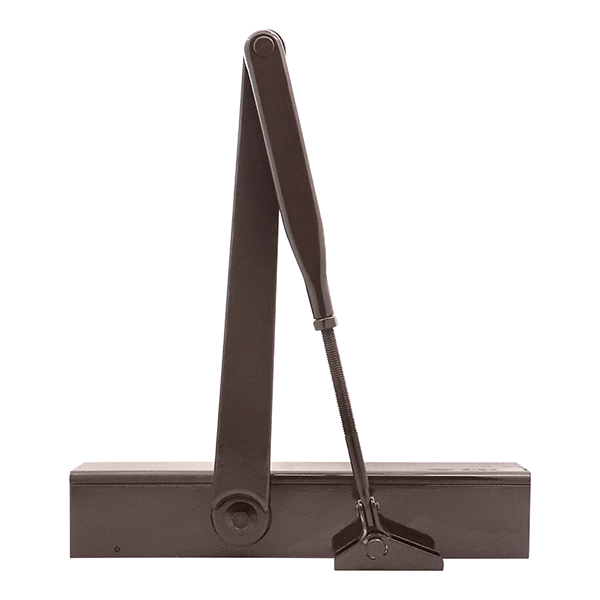Сила закривання відповідає класу EN 2-6 і регулюється за допомогою гвинта на боковій стороні корпусу. Це дозволяє адаптувати дотягувач під різні типи дверей, залежно від їх ваги та розміру. У комплекті передбачена стандартна тяга без функції фіксації дверного полотна у відкритому положенні. Водночас модель сертифікована для використання з протипожежними дверима, що робить її надійним вибором для приміщень із високими вимогами до пожежної безпеки.