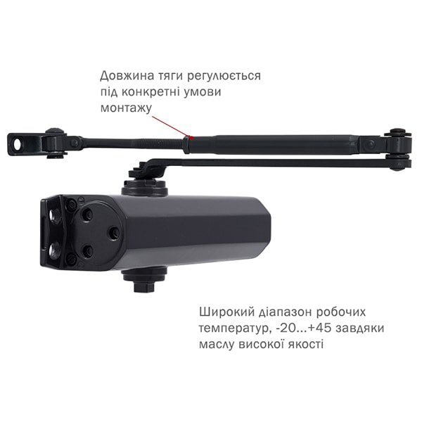 Також слід розуміти які додаткові функції Вам потрібні. Окрім стандартного дотягування дверного полотна, більш дорожчі моделі мають функцію фіксації у відкритому положенні. Це створює додаткову зручність, адже можна зафіксувати двері у відчиненому стані. Можливі нюанси і стосовно місця встановлення. До прикладу, якщо заважає стіна, то потрібно ставити монтажну пластину або дотягувач із ковзною тягою, він виглядає набагато естетичніше, але ставлять його переважно на легкі двері.