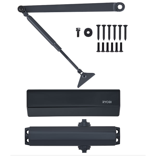 Продукція японського виробника RYOBI по праву визнана в усьому світі завдяки своїй відмінній якості. Дана модель RYOBI D-1554 STD встановлюється накладним монтажем на легкі дверні полотна масою до 80 кг та шириною до 1100 мм. Гідравлічний привід забезпечує чітку роботу дотягувача з кутом відкривання до 180°. Безпосередньо на корпусі є можливість регулювати основну швидкість в межах 180°-10°, та швидкість захлопування - 10°-0°. Завдяки цьому можна досягнути індивідуального налаштування зачинення дверей так як Вам потрібно. Особливістю дотягувачів RYOBI є спеціальне термоконстантне масло. Воно забезпечує стабільну роботу навіть при великому перепаді температур. Взагалі робоча температура варіюється в діапазоні від -20 до +45°С. RYOBI D-1554 STD може бути встановлений на ліво і правосторонні двері з можливістю відкривання як всередину так і назовні. В даній комплектації присутня стандартна тяга без фіксації дверного полотна у відкритому положенні. Проте даний дотягувач сертифікований для використання з протипожежними дверима. В кольорі “сірий антрацит” найкраще буде доповнювати двері подібних темних відтінків для того, щоб максимально уникнути контрастів та не привертати зайвої уваги.