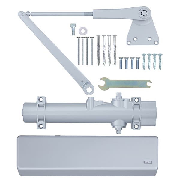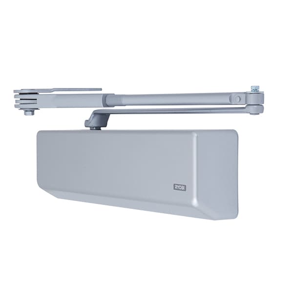 Продукція японського виробника RYOBI по праву визнана в усьому світі завдяки своїй відмінній якості. Дана модель RYOBI DS-4550P BC/DA PRL HO встановлюється накладним монтажем на промислові великогабаритні дверні полотна масою до 200 кг та шириною до 1400 мм. Гідравлічний привід забезпечує чітку роботу дотягувача з кутом відкривання до 180°. Безпосередньо на корпусі є можливість регулювати основну швидкість в межах 180°-10°, швидкість захлопування - 10°-0° та гальмо відчинення - 75°-180°. Дана функція захищає дверне полотно від удару об стіну та виривання тяги дотягувача. Також фішкою цієї моделі є функція уповільнення зачинення. Це зручно, коли проходять багато людей чи потрібно занести вантаж. Завдяки цьому можна досягнути індивідуального налаштування зачинення дверей так як Вам потрібно. Особливістю дотягувачів RYOBI є спеціальне термоконстантне масло. Воно забезпечує стабільну роботу навіть при великому перепаді температур. Взагалі робоча температура варіюється в діапазоні від -20 до +45°С. RYOBI DS-4550P BC/DA PRL HO може бути встановлений на ліво і правосторонні двері з можливістю відкривання як всередину так і назовні. В даній комплектації присутня паралельна тяга з фіксацією дверного полотна у відкритому положенні. Це дає можливість зберегти дизайн приміщення там, де потрібно, щоб дотягувач не виділявся чи взагалі було можливе його встановлення в умовах обмеженого простору. Фіксація ж дасть змогу залишити двері відчиненими для провітрювання чи для зручності користування у комерційних приміщеннях. В сірому кольорі найкраще буде доповнювати двері подібних відтінків для того, щоб максимально уникнути контрастів та не привертати зайвої уваги.
