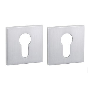 Накладки SIBA з квадратною розетою використовуються в якості декоративного елементу маскування отворів під серцевину та для надання естетичного вигляду дверному полотну. Підбираються відповідно до обраних ручок SIBA в кольорі “матовий хром”. Складаються із двох половинок на обидві сторони дверей. Виготовлені із алюмінію. В монтажі прості.