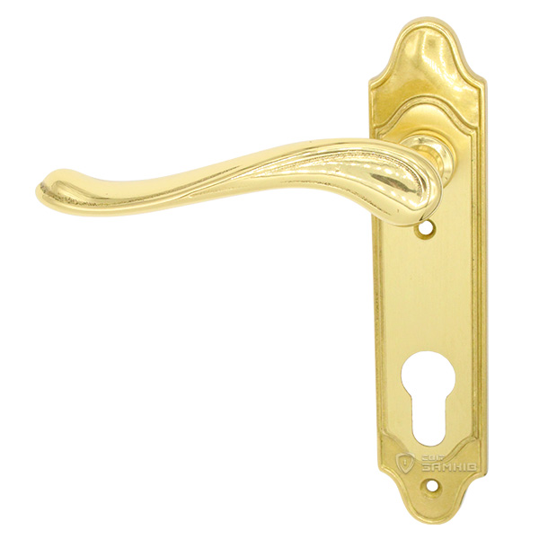 Польські ручки на планці – представляють собою практичну та надійну дверну фурнітуру за прийнятну ціну. Виготовляються із латуні, це міцний та приємний на дотик матеріал. Ручки з такого матеріалу стійкі до корозії та мають тривалий термін користування. Дана модель має тип планки під серцевину і встановлюється на міжкімнатні дерев’яні двері. Яскравий колір – золото – добре підійде для будинку чи квартири в світло-золотих тонах. Покриття методом гальваніки забезпечить надійних захист кольорового відтінку від подряпин та стирання. Під час вибору варто врахувати такий критерій як міжосьова відстань, вона може бути різною і залежить від механізму замка. Наприклад, ці ручки підходять для замків з міжосьовою відстанню 72 мм. Процес кріплення планки до дверного полотна здійснюється за рахунок шурупів. Під час цього процесу важливо міцно зафіксувати ручки спеціальним гвинтом гужоном, це збільшить термін експлуатації та дозволить уникнути проблем з провисанням ручок.