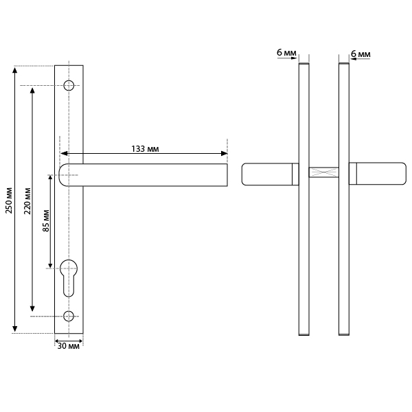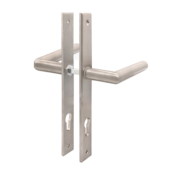 В конструкції ручок відсутня пружина, тому вони працюють від пружини механічного замка. Модель виготовлена з нержавіючої сталі, що робить експлуатацію більш витривалою та доволі зносостійкою. Їх можна використовувати при будь-яких погодних умов і це ніяк не вплине на зовнішній вид чи функціональність. Міжосьова відстань, по якій орієнтуються, обираючи цей тип ручок, становить 85 мм. Планка кріпиться до дверного полотна шурупами або стяжними гвинтами.
