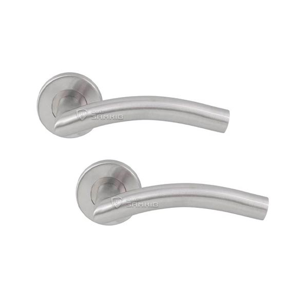 Ручки на розеті торгової марки COMIT. Широкий асортимент дозволить підібрати моделі як до класичних так і до сучасних хай-тек дверей. Ця модель ручки виготовлена із нержавіючої сталі. Завдяки цьому їх можна використовувати на вхідних металевих або дерев’яних дверях. За необхідності ручки можна додатково комплектувати воротком чи накладкою, які будуть в стиль і колір цієї моделі. При монтажі варто звернути увагу на «гужон» - це кріпильний елемент ручки до квадрата, який при правильній установці не дасть фурнітурі зламатись довгі роки.