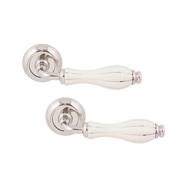 Опис Ручки на розеті FIMET Lady 148 (231C) F21 нікель/слонова кістка/срібні смужки