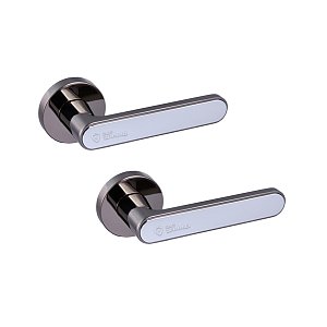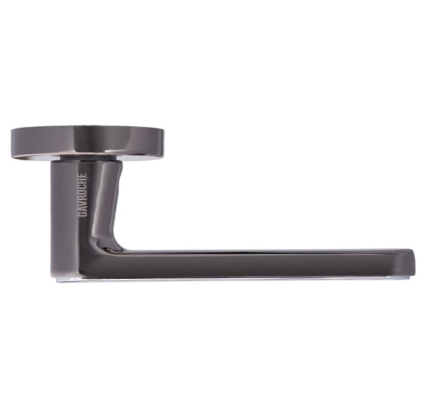 Комплект роздільних ручок французької ТМ "GAVROCHE" - відмінна якість і довговічність роботи. Ручки суцільнолиті, важкі, виготовлені із цинкового сплаву. Кольоровий відтінок наноситься спеціальним методом – гальваніки. Це гарантує термін служби покриття протягом 60 місяців - офіційна гарантія виробника. Зручна форма нажимної частини зробить користування приємним. Особливість цієї моделі - суцільна пласка кругла розета, яка фіксується гужоном. Це робить ручку надзвичайно стильною та оригінальною. На дверному полотні виглядає вишукано та елегантно. Поєднання відтінків - чорний нікель із хромованою вставкою - довершить двері в сірих тонах. Дуже гарно виглядатиме на полотнах з чорним склом. Якщо у Вас приміщення в стилі хай-тек або модер - саме ця ручка - прекрасний вибір. В ручках такого типу не видно отворів для кріплення, вони прикриваються зовнішньою кришкою розети. Ручка просто і легко монтується. Залежно від встановленого замка та товщини дверей, ручку можна зафіксувати на стяжні гвинти або саморізи.