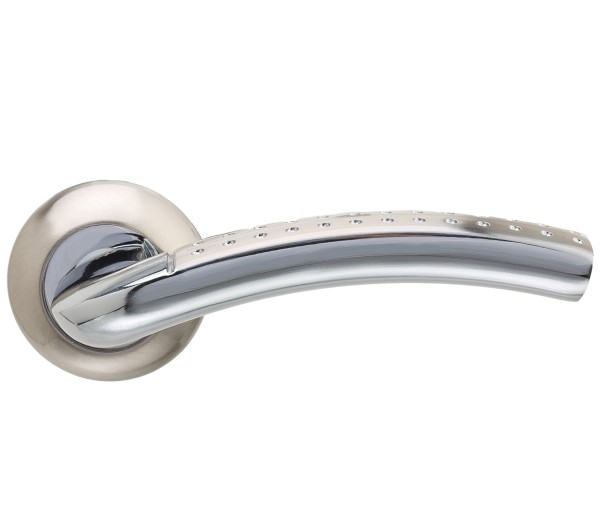 Ручка французької торгової марки GAVROCHE – це поєднання сучасного дизайну та якості за прийнятну ціну. Дана модель виготовлена із алюмінієвого сплаву. Кольоровий відтінок наноситься спеціальним методом – гальваніки. Це гарантує термін служби покриття протягом 36 місяців. Зручна форма нажимної частини зробить користування приємним. Кругла основа ручки гарно виглядатиме на полотнах із плавними вигнутими лініями. Вдале поєднання кольорів - блискучий хром та нікель - гарно виглядатиме на білих, сірих дверних полотнах. А якщо її встановити на дверне полотно в кольорі венге - ручка стане чудовим акцентом і підкреслить Ваш вишуканий смак. В ручках такого типу не видно отворів для кріплення, вони прикриваються зовнішньою кришкою розети. Ручка просто і легко монтується. Залежно від встановленого замка та товщини дверей, ручку можна зафіксувати на стяжні гвинти або саморізи.