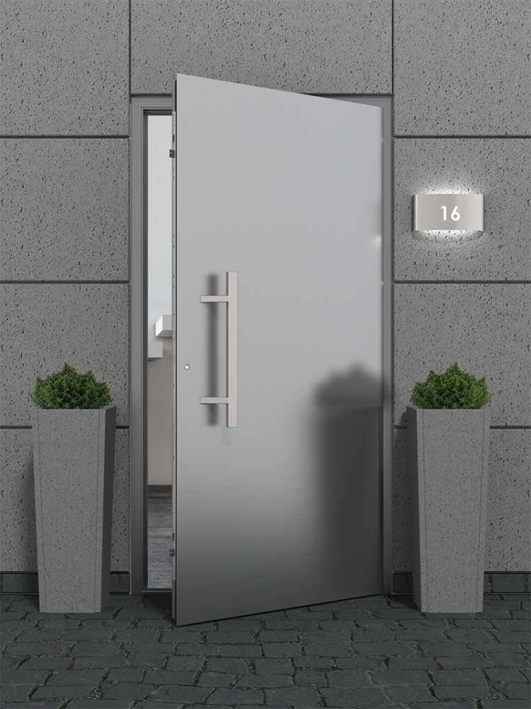 WALA Q45RX – це ручки скоби, які встановлюють на вхідні двері з металопластику, алюмінію та скла. Виробляються із нержавіючої сталі. Ручки з такого матеріалу міцні та стійкі до атмосферних явищ – вони не тускніють і не змінюють свій колір під впливом температури. Тому їх можна впевнено використовувати при вуличних умовах. Саме тому вони будуть вдалим вибором для використання в приміщеннях з великою прохідністю людей, наприклад, в ресторанах, готелях або магазинах. Сучасний хай-тек стиль ручок з прямими лініями гармонійно доповнить інтер’єр та дверне полотно із скляними та металевими елементами. Колір матової нержавіючої сталі прекрасно підкреслить приміщення в холодних тонах, а дверям в темних відтінках додасть трохи контрасту.