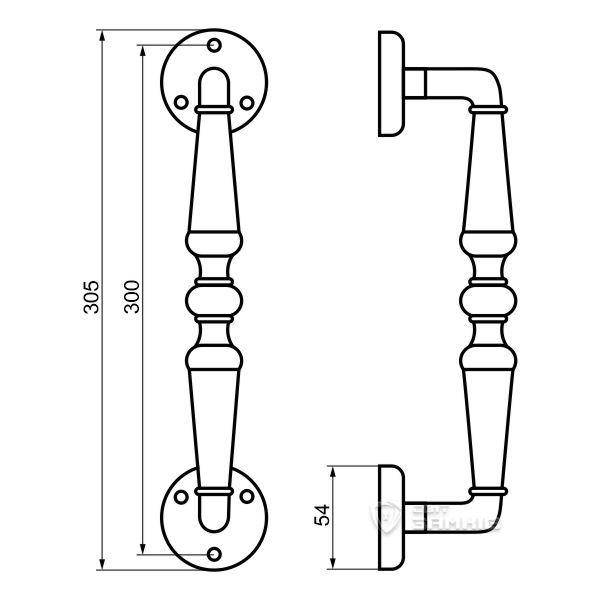 Ручка скоба торгової марки TRION. Представляє з себе елегантну дверну фурнітуру за доступну ціну. Ручки суцільнолиті із цинкового сплаву, завдяки чому вони міцні та стійкі до корозії. Таким чином їх зовнішній вигляд буде збережений від стирання понад 60 місяців. Фурнітура такого типу зручна у використанні та має тривалий термін експлуатації. Трендовий колір – античне срібло – добре підкреслить будинок або кімнату в світлих тонах. Вишуканий дизайн в класичному стилі гармонійно доповнить дверне полотно із різноманітними орнаментами та візерунками, а також довершить інтер’єр з елементами класики. Основним технічним критерієм при виборі є довжина ручки та відстань між кріпленнями. Важливо щоб при встановленні скоби, кріплення розмістились вище та нижче замка. Найчастіше ручки такого типу використовують з замком “бочкою”. Якщо ручка монтується лише одна то вона фіксується на шурупи, які прикриваються зовнішньою розетою. Якщо ж ручки ставляться дві - через дверне полотно робиться наскрізний отвір, куди вставляється спеціальна шпилька з різьбою. На неї накручується ручка і фіксується гужонами на нижній і верхній розеті.