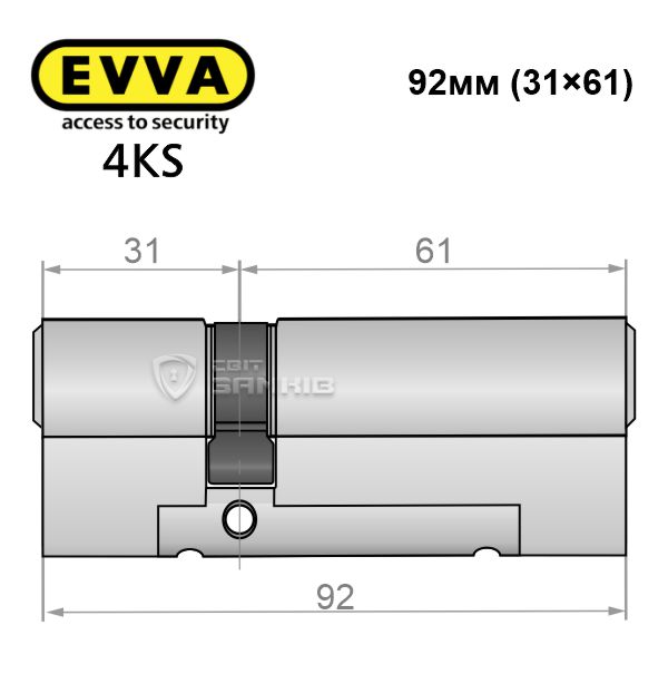 Купити циліндр EVVA 4KS 92 (31*61) нікель сатин 5 ключів в роздріб і гуртом можна на нашому сайті.