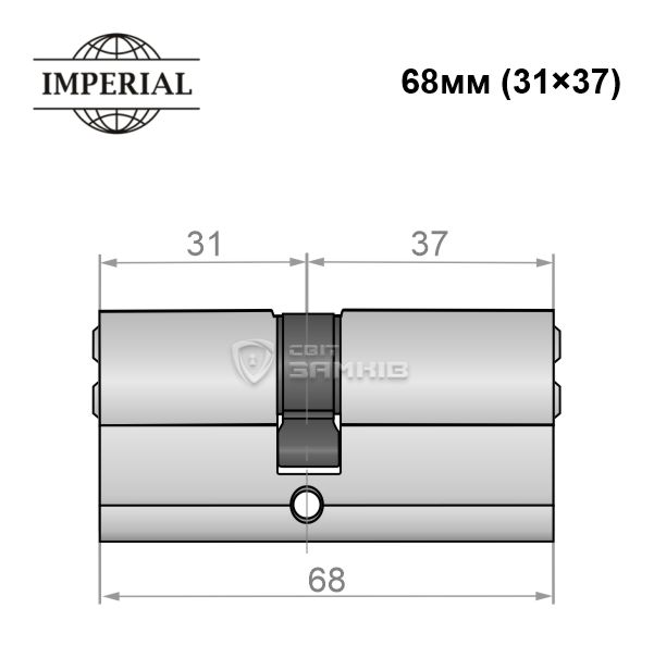 Опис Циліндр IMPERIAL латунь 68 (31*37) нікель сатин