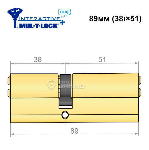 Купити циліндр MUL-T-LOCK Interactive+ CLIQ 89 (38i*51) латуньнікель сатин в роздріб і гуртом можна на нашому сайті.