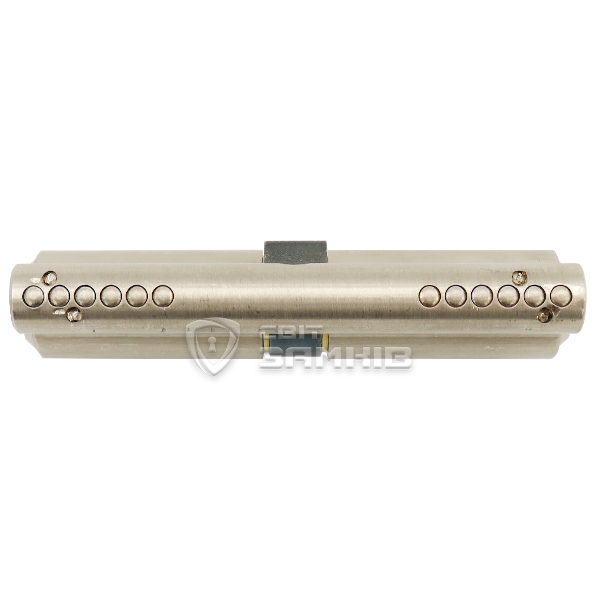 В корпусі циліндру та плазі вмонтовані сталеві гартовані стержні, вони захищають від свердління чи фрезерування. При спробі просвердлити отвір, свердло буде вести в бік або воно зламається. Але ми все одно рекомендуємо при встановленні на вхідних дверях використовувати врізну броненакладку, це підсилить конструкцію та значно ускладнить будь-які маніпуляції із циліндром.