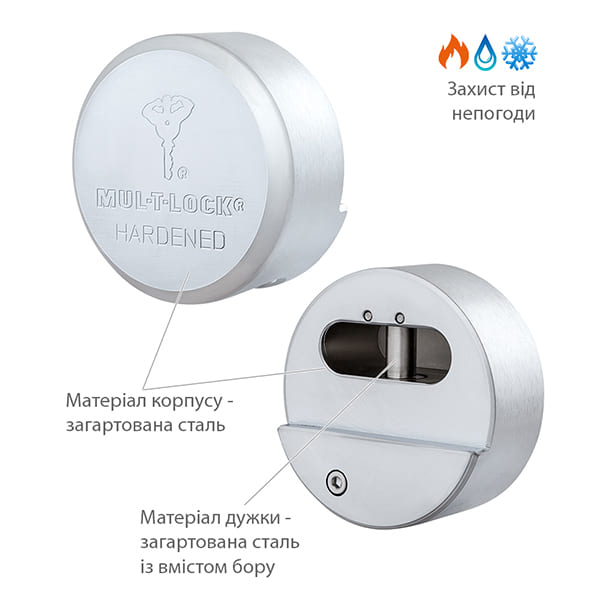 • Матеріал дужки – гартована сталь із вмістом бору.