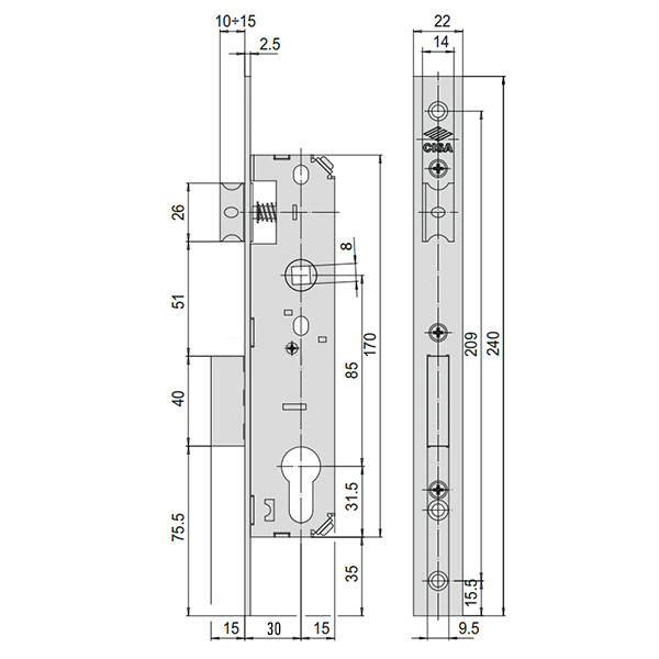 Опис Механізм замка CISA 44661.30.0.20 язичок (BS30*85мм, 22 мм) нержавіюча сталь
