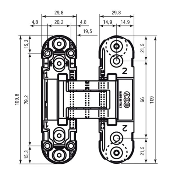 Італійська ТМ AGB на сьогодні являється європейським лідером з виробництва дверної фурнітури. Обумовлює це насамперед технологічна перевага та постійні інновації, які є основою якості продукції. Дана модель AGB Eclipse 2.0 - це завіс прихованого монтажу. На практиці це буквально означає, що він захований всередину дверного полотна та не виступає за його площину. З точки зору безпеки подібне виконання є найкращим, адже таку петлю не можна вибити або спилити. AGB Eclipse 2.0 виготовляється із цинкового сплаву ZAMAK та призначений для дерев’яних дверних полотен товщиною від 40 до 44 мм. Забезпечує їхнє плавне відкривання на 180º (при відсутності лиштви). Це означає, що у повному відкритому стані двері не будуть займати житлового простору та заважати. Дана модель регулюється в 3-х вимірах: вертикаль +/- 2 мм, горизонталь +/- 1,5 мм, притиск +/- 1,0 мм. Таким чином, можна добитись максимальної точності та відсутності будь-яких щілин. Важливим аспектом при підборі завіс являються габарити дверей. Знаючи їх, Ви дуже просто визначитесь із кількістю необхідних петель з розрахунку того, що навантаження повинно бути не більше 40 кг на 2 петлі, або 60 кг - на 3. AGB Eclipse 2.0 виконаний в мінімалістичному стилі, тож стане незамінним аксесуаром для прихованих дверних полотен. Регулювальні гвинти не будуть видимими за спеціальними ковпачками навіть при відкритих дверях. Це все дає великий простір для цікавих дизайнерських втілень в сучасному хай-тек напрямку. В срібному кольорі ці завіси будуть вдалим рішенням на дверях відповідних відтінків.