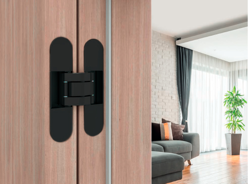 Важливим аспектом при підборі завіс являються габарити дверей. Знаючи їх, Ви дуже просто визначитесь із кількістю необхідних петель з розрахунку того, що навантаження повинно бути не більше 60 кг на 2 петлі, або 80 кг - на 3. AGB Eclipse 2.1 виконаний в мінімалістичному стилі, тож стане незамінним аксесуаром для прихованих дверних полотен. Регулювальні гвинти не будуть видимими за спеціальними ковпачками навіть при відкритих дверях. Це все дає великий простір для цікавих дизайнерських втілень в сучасному хай-тек напрямку. В чорному кольорі ці завіси будуть вдалим рішенням на дверях темних відтінків.