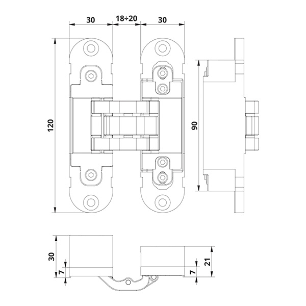 Завіси ТМ OTLAV виготовляються в Італії. Цей виробник давно відомий на ринку та має більше сотні патентів в сфері фурнітури для дверей і вікон. Відповідно його виробництво гарантує стандарти якості. Дана модель - це петля прихованого монтажу. На практиці це буквально означає, що вона захована всередину дверного полотна та не виступає за його площину. З точки зору безпеки подібне виконання є найкращим, адже такий завіс не можна вибити або спилити. OTLAV Invisacta IN300 виготовляється із цинкового сплаву ZAMAK та призначений для дерев’яних дверних полотен. Завдяки малій глибині врізки (21 мм) може ставитись і на алюмінієві двері. Сім опорних точок і нейлонові вставки забезпечують їхнє плавне відкривання на 180º (за відсутності лиштви). Це означає, що у повному відкритому стані двері не будуть заважати, займаючи житловий простір. Дана модель регулюється в 3-х вимірах: вертикаль, горизонталь, притиск. Таким чином, можна добитись максимальної точності та відсутності будь-яких щілин. Важливим аспектом при підборі завіс являються габарити дверей. Знаючи їх, Ви дуже просто визначитесь із кількістю необхідних петель з розрахунку того, що навантаження повинно бути не більше 60 кг на 2 петлі (80 кг - на три). OTLAV Invisacta IN300 виконаний в мінімалістичному стилі. Регулювальні гвинти приховуються спеціальними ковпачками, тому їх не видно навіть при відкритих дверях. Це все дає великий простір для цікавих дизайнерських втілень. В бронзовому кольорі ці завіси будуть вдалим рішенням на дверях аналогічних відтінків для того, щоб максимально уникнути контрастів та не привертати зайвої уваги.