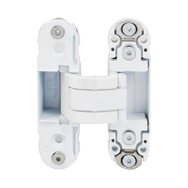 Італійська ТМ AGB на сьогодні являється європейським лідером з виробництва дверної фурнітури. Обумовлює це насамперед технологічна перевага та постійні інновації, які є основою якості продукції. Дана модель AGB Eclipse 2.0 - це завіс прихованого монтажу. На практиці це буквально означає, що він захований всередину дверного полотна та не виступає за його площину. З точки зору безпеки подібне виконання є найкращим, адже таку петлю не можна вибити або спилити. AGB Eclipse 2.0 виготовляється із цинкового сплаву ZAMAK та призначений для дерев’яних дверних полотен товщиною від 40 до 44 мм. Забезпечує їхнє плавне відкривання на 180º (при відсутності лиштви). Це означає, що у повному відкритому стані двері не будуть займати житлового простору та заважати. Дана модель регулюється в 3-х вимірах: вертикаль +/- 2 мм, горизонталь +/- 1,5 мм, притиск +/- 1,0 мм. Таким чином, можна добитись максимальної точності та відсутності будь-яких щілин. Важливим аспектом при підборі завіс являються габарити дверей. Знаючи їх, Ви дуже просто визначитесь із кількістю необхідних петель з розрахунку того, що навантаження повинно бути не більше 40 кг на 2 петлі, або 60 кг - на 3. AGB Eclipse 2.0 виконаний в мінімалістичному стилі, тож стане незамінним аксесуаром для прихованих дверних полотен. Регулювальні гвинти не будуть видимими за спеціальними ковпачками навіть при відкритих дверях. Це все дає великий простір для цікавих дизайнерських втілень в сучасному хай-тек напрямку. В білому кольорі ці завіси будуть вдалим рішенням на дверях аналогічних відтінків для того, щоб максимально уникнути контрастів та не привертати зайвої уваги.