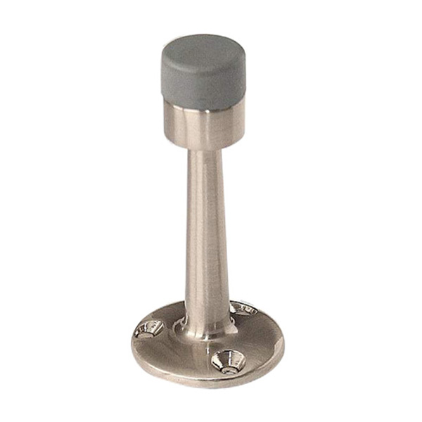 Стопор - це аксесуар, який призначений для захисту дверного полотна, стін і меблів від пошкоджень під час неконтрольованого відчинення дверей. По суті він обмежує кут відкривання, тим самим зберігаючи ручки від удару об стіну. Дана модель “ПОЛЬЩА стіна” виконана у вигляді "шпиля". Має невеликі розміри, тому не привертатиме зайвої уваги. Встановлюється в стіну з допомогою трьох шурупів. Стопор виготовлений із цинкового сплаву та вкритий патиною й захисним шаром лаку. Для амортизації та пом’якшення удару в місці контакту із дверним полотном має гумовий відбійник. Може використовуватись як з міжкімнатними, так і вхідними дверями. В кольорі “нікель сатинований” найкраще буде доповнювати двері та стіну відповідних сірих відтінків для того, щоб максимально уникнути контрастів та не привертати зайвої уваги.