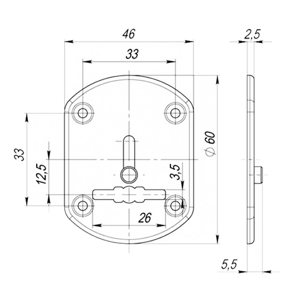 • Овальна форма розміром – 60х46х2,5 мм.