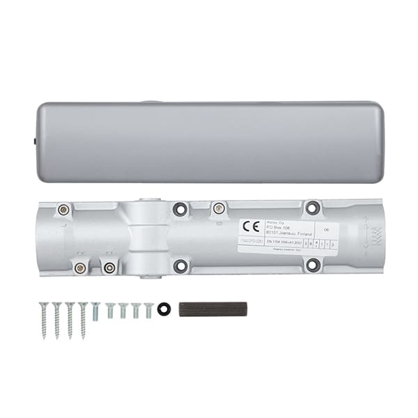 Фінська ТМ ABLOY по праву вважається одним із європейських лідерів виробництва дверної фурнітури. Успішне поєднання якості та сучасного дизайну є ключовим фактором такого успіху. Дана модель дотягувача ABLOY DC330 встановлюється накладним монтажем на внутрішні та зовнішні дверні полотна з максимальною вагою до 80 кг та шириною до 1100 мм. Безпосередньо на корпусі є можливість регулювати основну швидкість швидкість захлопування та гальмо відчинення. Дана функція захищає дверне полотно від удару об стіну та виривання тяги дотягувача. Особливістю цієї моделі є встановлений всередині кулачковий вал, з допомогою якого зменшується опір при відчиненні дверей. За рахунок цього досягається ще більш комфортне їхнє використання. Загалом завдяки таким можливостям регулювання можна добитись максимально індивідуального налаштування зачинення дверей так, як Вам потрібно. Гідравлічне масло в даній моделі високої якості. Завдяки цьому проблем при роботі дотягувача при перепаді температур не буде. Взагалі його робоча температура варіюється в діапазоні від -35 до +50°С. Крім того, даний дотягувач сертифікований для використання з протипожежними дверима. В даній комплектації відсутня тяга. Вона замовляється окремо в залежності від Ваших потреб. В сірому кольорі найкраще буде доповнювати двері аналогічних відтінків для того, щоб максимально уникнути контрастів та не привертати зайвої уваги.