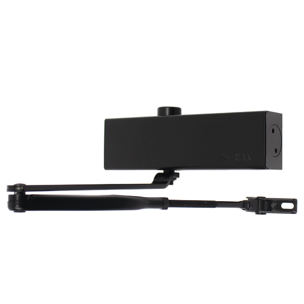 Сила закривання у межах EN 2-4 регулюється шляхом зміни позиції корпусу дотягувача та тяги. У стандартній комплектації передбачено тягу без функції фіксації дверей у відкритому положенні. Однак дотягувач сертифікований для використання з протипожежними дверима, що робить його чудовим вибором для забезпечення безпеки в приміщеннях із високими вимогами до пожежної стійкості.