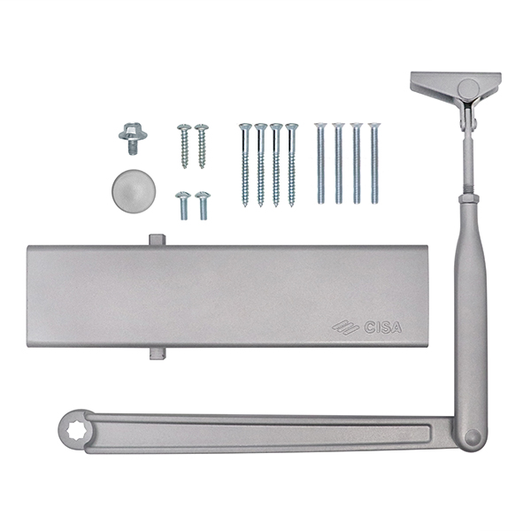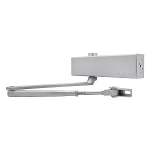 Сила закривання регулюється в діапазоні EN 2-4 за допомогою гвинта, розташованого збоку на корпусі. У даній комплектації передбачена стандартна тяга без функції фіксації дверей у відкритому положенні. Водночас цей дотягувач повністю сертифікований для використання з протипожежними дверима, що робить його ідеальним рішенням для об’єктів із підвищеними вимогами до безпеки.