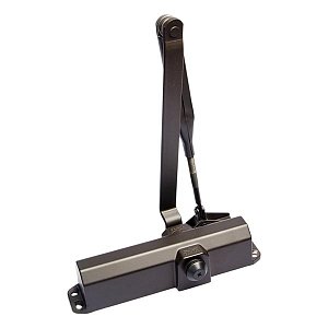 Німецька ТМ DORMA є одним із провідних виробників систем для автоматичних дверей та фурнітури для них. Дана модель дотягувача DORMA TS Compakt EN2/3/4 встановлюється накладним монтажем на внутрішні та зовнішні дверні полотна з максимальною вагою до 80 кг та шириною до 1100 мм. Безпосередньо на корпусі є можливість регулювати основну швидкість та швидкість захлопування в діапазоні 20°-0°. Загалом завдяки таким можливостям регулювання можна добитись максимально індивідуального налаштування зачинення дверей. Гідравлічне масло в даній моделі високої якості. Завдяки цьому проблем при роботі дотягувача при перепаді температур не буде. Взагалі його робоча температура варіюється в діапазоні від -35°С до +40°С. В даній комплектації присутня стандартна тяга без фіксації дверного полотна у відкритому положенні. Проте даний дотягувач сертифікований для використання з протипожежними дверима. В коричневому кольорі найкраще буде доповнювати двері аналогічних темних відтінків для того, щоб максимально уникнути контрастів та не привертати зайвої уваги.