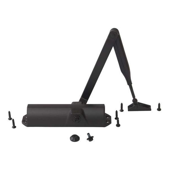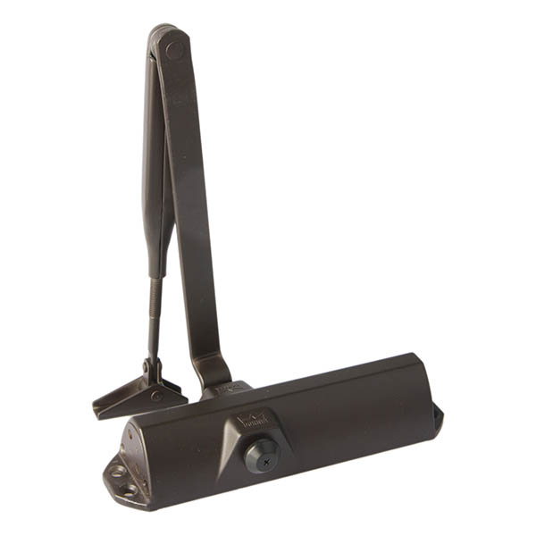 Німецька ТМ DORMA є одним із провідних виробників систем для автоматичних дверей та фурнітури для них. Дана модель дотягувача DORMA TS68 EN2/3/4 встановлюється накладним монтажем переважно лише на внутрішні дверні полотна з максимальною вагою до 80 кг та шириною від 750 до 1100 мм. Безпосередньо на корпусі є можливість регулювати основну швидкість в діапазоні 180°-15° та швидкість захлопування - 15°-0°. Загалом завдяки таким можливостям регулювання можна добитись максимально індивідуального налаштування зачинення дверей. Гідравлічне масло в даній моделі високої якості. Завдяки цьому проблем при роботі дотягувача при перепаді температур не буде. Взагалі його робоча температура варіюється в діапазоні від -15°С до +40°С. В даній комплектації присутня стандартна тяга без фіксації дверного полотна у відкритому положенні. В коричневому кольорі найкраще буде доповнювати двері аналогічних темних відтінків для того, щоб максимально уникнути контрастів та не привертати зайвої уваги.