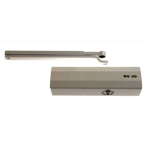 Німецький виробник G-U вже більше століття спеціалізується на випуску дверної та віконної фурнітури. Дана модель дотягувача GU ОТS 210 STD встановлюється накладним монтажем на внутрішні та зовнішні дверні полотна з максимальною вагою до 80 кг та шириною до 1100 мм. Безпосередньо на корпусі є можливість регулювати основну швидкість, швидкість захлопування та гальмо відчинення. Дана функція захищає дверне полотно від удару об стіну та виривання тяги дотягувача. Загалом завдяки таким можливостям регулювання можна добитись максимально індивідуального налаштування зачинення дверей так, як Вам потрібно. Гідравлічне масло в даній моделі високої якості. Завдяки цьому проблем при роботі дотягувача при перепаді температур не буде. Взагалі його робоча температура варіюється в діапазоні від -15°С до +40°С. В даній комплектації присутня стандартна тяга без фіксації дверного полотна у відкритому положенні. В сірому кольорі найкраще буде доповнювати двері аналогічних відтінків для того, щоб максимально уникнути контрастів та не привертати зайвої уваги.