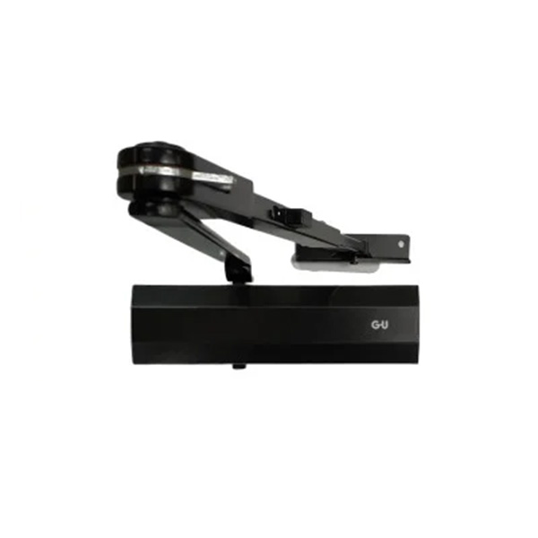 Німецький виробник G-U вже більше століття спеціалізується на випуску дверної та віконної фурнітури. Дана модель дотягувача GU ОТS 210 STD HO встановлюється накладним монтажем на внутрішні та зовнішні дверні полотна з максимальною вагою до 80 кг та шириною до 1100 мм. Безпосередньо на корпусі є можливість регулювати основну швидкість, швидкість захлопування та гальмо відчинення. Дана функція захищає дверне полотно від удару об стіну та виривання тяги дотягувача. Загалом завдяки таким можливостям регулювання можна добитись максимально індивідуального налаштування зачинення дверей так, як Вам потрібно. Гідравлічне масло в даній моделі високої якості. Завдяки цьому проблем при роботі дотягувача при перепаді температур не буде. Взагалі його робоча температура варіюється в діапазоні від -15°С до +40°С. В даній комплектації присутня стандартна тяга з фіксацією дверного полотна у відкритому положенні в межах 70°-150°. Це дає можливість залишити двері відчиненими для провітрювання чи для зручності користування у комерційних приміщеннях. В чорному кольорі найкраще буде доповнювати двері аналогічних темних відтінків для того, щоб максимально уникнути контрастів та не привертати зайвої уваги.