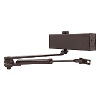 Німецький виробник G-U вже більше століття спеціалізується на випуску дверної та віконної фурнітури. Дана модель дотягувача GU ОТS 210 STD HO встановлюється накладним монтажем на внутрішні та зовнішні дверні полотна з максимальною вагою до 80 кг та шириною до 1100 мм. Безпосередньо на корпусі є можливість регулювати основну швидкість, швидкість захлопування та гальмо відчинення. Дана функція захищає дверне полотно від удару об стіну та виривання тяги дотягувача. Загалом завдяки таким можливостям регулювання можна добитись максимально індивідуального налаштування зачинення дверей так, як Вам потрібно. Гідравлічне масло в даній моделі високої якості. Завдяки цьому проблем при роботі дотягувача при перепаді температур не буде. Взагалі його робоча температура варіюється в діапазоні від -15°С до +40°С. В даній комплектації присутня стандартна тяга з фіксацією дверного полотна у відкритому положенні в межах 70°-150°. Це дає можливість залишити двері відчиненими для провітрювання чи для зручності користування у комерційних приміщеннях. В коричневому кольорі найкраще буде доповнювати двері аналогічних темних відтінків для того, щоб максимально уникнути контрастів та не привертати зайвої уваги.