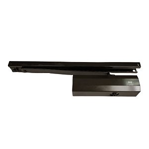 Німецький виробник G-U вже більше століття спеціалізується на випуску дверної та віконної фурнітури. Дана модель дотягувача GU ОТS 634 SLD HO встановлюється накладним монтажем на внутрішні та зовнішні дверні полотна з максимальною вагою до 100 кг та шириною до 1100 мм. Безпосередньо на корпусі є можливість регулювати основну швидкість, швидкість захлопування та гальмо відчинення. Дана функція захищає дверне полотно від удару об стіну та виривання тяги дотягувача. Загалом завдяки таким можливостям регулювання можна добитись максимально індивідуального налаштування зачинення дверей так, як Вам потрібно. Гідравлічне масло в даній моделі високої якості. Завдяки цьому проблем при роботі дотягувача при перепаді температур не буде. Взагалі його робоча температура варіюється в діапазоні від -15°С до +40°С. В даній комплектації присутня ковзна тяга з фіксацією дверного полотна у відкритому положенні в межах 80°-130°. Це дає можливість залишити двері відчиненими для провітрювання чи для зручності користування у комерційних приміщеннях. В коричневому кольорі найкраще буде доповнювати двері аналогічних темних відтінків для того, щоб максимально уникнути контрастів та не привертати зайвої уваги.