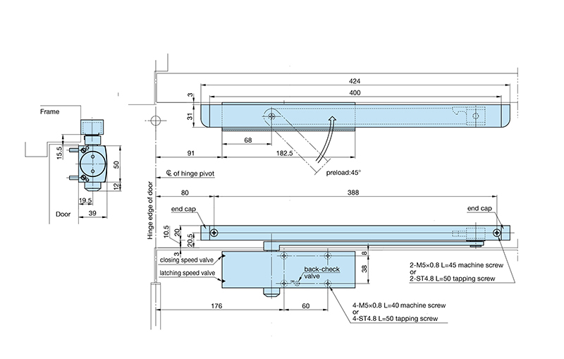 Продукція японського виробника RYOBI по праву визнана в усьому світі завдяки своїй відмінній якості. Дана модель RYOBI D-1200T SLD HO встановлюється накладним монтажем на дверні полотна масою до 40 кг та шириною до 850 мм. Гідравлічний привід забезпечує чітку роботу дотягувача з кутом відкривання до 130°. Безпосередньо на корпусі є можливість регулювати основну швидкість в межах 130°-10° та швидкість захлопування - 10°-0°. Завдяки цьому можна досягнути індивідуального налаштування зачинення дверей так як Вам потрібно. Особливістю дотягувачів RYOBI є спеціальне термоконстантне масло. Воно забезпечує стабільну роботу навіть при великому перепаді температур. Взагалі робоча температура варіюється в діапазоні від -20 до +45°С. D-1200T SLD HO може бути встановлений на ліво і правосторонні двері з можливістю відкривання як всередину так і назовні. В даній комплектації присутня ковзна тяга з фіксацією дверного полотна у відкритому положенні. Це дає можливість залишити двері відчиненими для провітрювання чи для зручності користування у комерційних приміщеннях. В кольорі “бронза металік” найкраще буде доповнювати двері подібних темних відтінків для того, щоб максимально уникнути контрастів та не привертати зайвої уваги.