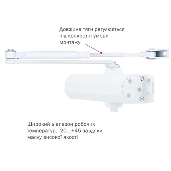 Також слід розуміти які додаткові функції Вам потрібні. Окрім стандартного дотягування дверного полотна, більш дорожчі моделі мають функцію фіксації у відкритому положенні. Це створює додаткову зручність, адже можна зафіксувати двері у відчиненому стані. Можливі нюанси і стосовно місця встановлення. До прикладу, якщо заважає стіна, то потрібно ставити монтажну пластину або дотягувач із ковзною тягою, він виглядає набагато естетичніше, але ставлять його переважно на легкі двері.