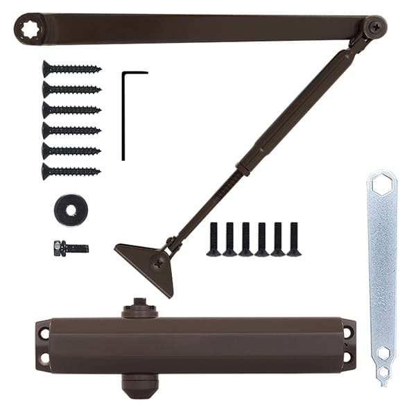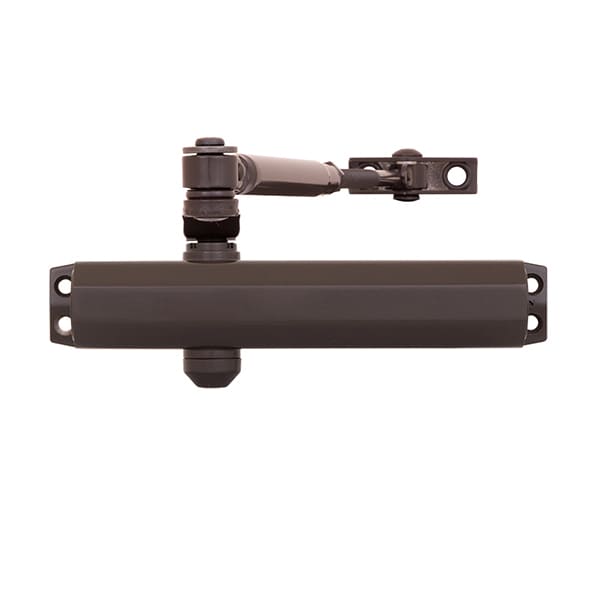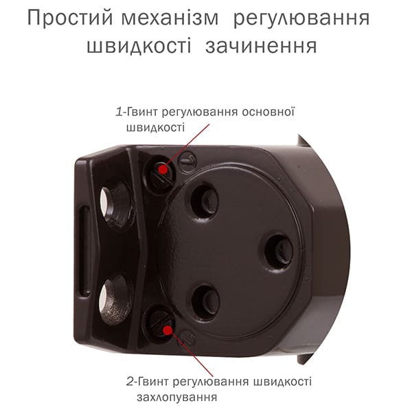 Продукція японського виробника RYOBI по праву визнана в усьому світі завдяки своїй відмінній якості. Дана модель RYOBI D-2005V BC STD встановлюється накладним монтажем на дверні полотна масою до 100 кг та шириною до 1250 мм. Гідравлічний привід забезпечує чітку роботу дотягувача з кутом відкривання до 180°. Безпосередньо на корпусі є можливість регулювати основну швидкість в межах 180°-10°, швидкість захлопування - 10°-0° та гальмо відчинення - 75°-180°. Дана функція захищає дверне полотно від удару об стіну та виривання тяги дотягувача. Завдяки цьому можна досягнути індивідуального налаштування зачинення дверей так як Вам потрібно. Особливістю дотягувачів RYOBI є спеціальне термоконстантне масло. Воно забезпечує стабільну роботу навіть при великому перепаді температур. Взагалі робоча температура варіюється в діапазоні від -20 до +45°С. D-2005V BC STD може бути встановлений на ліво і правосторонні двері з можливістю відкривання як всередину так і назовні. В даній комплектації присутня стандартна тяга без фіксації дверного полотна у відкритому положенні. Проте даний дотягувач сертифікований для використання з протипожежними дверима. В коричневому кольорі найкраще буде доповнювати двері подібних темних відтінків для того, щоб максимально уникнути контрастів та не привертати зайвої уваги.