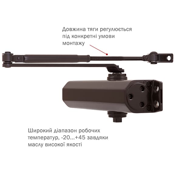 Також слід розуміти які додаткові функції Вам потрібні. Окрім стандартного дотягування дверного полотна, більш дорожчі моделі мають функцію фіксації у відкритому положенні. Це створює додаткову зручність, адже можна зафіксувати двері у відчиненому стані. Можливі нюанси і стосовно місця встановлення. До прикладу, якщо заважає стіна, то потрібно ставити монтажну пластину або дотягувач із ковзною тягою, він виглядає набагато естетичніше, але ставлять його переважно на легкі двері.