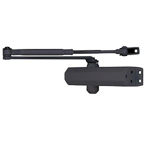 Продукція японського виробника RYOBI по праву визнана в усьому світі завдяки своїй відмінній якості. Дана модель RYOBI D-2005V BC STD встановлюється накладним монтажем на дверні полотна масою до 100 кг та шириною до 1250 мм. Гідравлічний привід забезпечує чітку роботу дотягувача з кутом відкривання до 180°. Безпосередньо на корпусі є можливість регулювати основнушвидкість в межах 180°-10°, швидкість захлопування - 10°-0° та гальмо відчинення - 75°-180°. Дана функція захищає дверне полотно від удару об стіну та виривання тяги дотягувача. Завдяки цьому можна досягнути індивідуального налаштування зачинення дверей так як Вам потрібно. Особливістю дотягувачів RYOBI є спеціальне термоконстантне масло. Воно забезпечує стабільну роботу навіть при великому перепаді температур. Взагалі робоча температура варіюється в діапазоні від -20 до +45°С. D-2005V BC STD може бути встановлений на ліво і правосторонні двері з можливістю відкривання як всередину так і назовні. В даній комплектації присутня стандартна тяга без фіксації дверного полотна у відкритому положенні. Проте даний дотягувач сертифікований для використання з протипожежними дверима. В кольорі “сірий антрацит” найкраще буде доповнювати двері подібних темних відтінків для того, щоб максимально уникнути контрастів та не привертати зайвої уваги.
