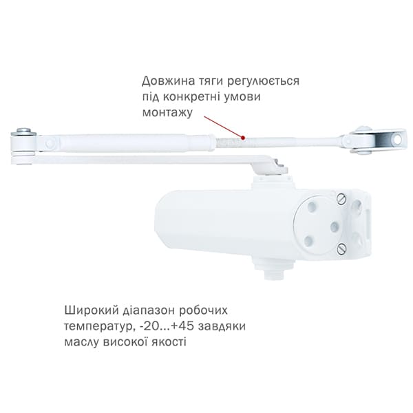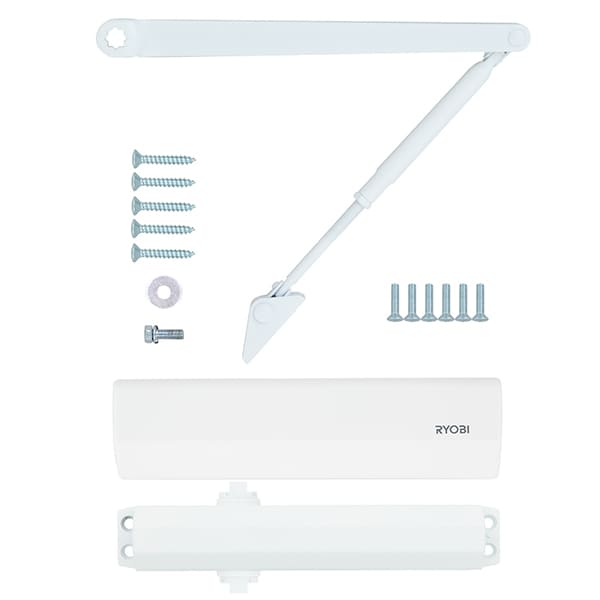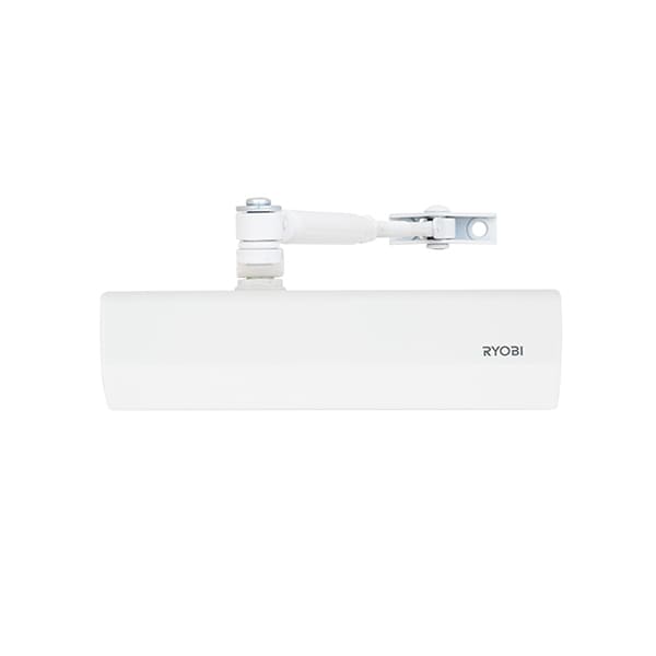 Продукція японського виробника RYOBI по праву визнана в усьому світі завдяки своїй відмінній якості. Дана модель RYOBI D-2055V BC STD встановлюється накладним монтажем на дверні полотна масою до 100 кг та шириною до 1250 мм. Гідравлічний привід забезпечує чітку роботу дотягувача з кутом відкривання до 180°. Безпосередньо на корпусі є можливість регулювати основну швидкість в межах 180°-10°, швидкість захлопування - 10°-0° та гальмо відчинення - 75°-180°. Дана функція захищає дверне полотно від удару об стіну та виривання тяги дотягувача. Завдяки цьому можна досягнути індивідуального налаштування зачинення дверей так як Вам потрібно. Особливістю дотягувачів RYOBI є спеціальне термоконстантне масло. Воно забезпечує стабільну роботу навіть при великому перепаді температур. Взагалі робоча температура варіюється в діапазоні від -20 до +45°С. D-2055V BC STD може бути встановлений на ліво і правосторонні двері з можливістю відкривання як всередину так і назовні. В даній комплектації присутня стандартна тяга без фіксації дверного полотна у відкритому положенні. Проте даний дотягувач сертифікований для використання з протипожежними дверима. В білому кольорі найкраще буде доповнювати двері подібних світлих відтінків для того, щоб максимально уникнути контрастів та не привертати зайвої уваги.