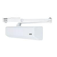 Продукція японського виробника RYOBI по праву визнана в усьому світі завдяки своїй відмінній якості. Дана модель RYOBI D-2550 BC UNIV встановлюється накладним монтажем на дверні полотна масою до 80 кг та шириною до 1100 мм. Є можливість встановлення за допомогою кронштейна паралельного положення тяги відносно дверей задля збереження дизайну приміщення чи використання дотягувача в умовах обмеженого простору. Тоді максимальна вага і ширина полотна повинні бути меншими. Гідравлічний привід забезпечує чітку роботу дотягувача з кутом відкривання до 180°. Безпосередньо на корпусі є можливість регулювати основну швидкість в межах 180°-10°, швидкість захлопування - 10°-0° та гальмо відчинення - 75°-180°. Дана функція захищає дверне полотно від удару об стіну та виривання тяги дотягувача. Завдяки цьому можна досягнути індивідуального налаштування зачинення дверей так як Вам потрібно. Особливістю дотягувачів RYOBI є спеціальне термоконстантне масло. Воно забезпечує стабільну роботу навіть при великому перепаді температур. Взагалі робоча температура варіюється в діапазоні від -20 до +45°С. RYOBI D-2550 BC UNIV може бути встановлений на ліво і правосторонні двері з можливістю відкривання як всередину так і назовні. В даній комплектації присутня стандартна тяга без фіксації дверного полотна у відкритому положенні. Проте даний дотягувач сертифікований для використання з протипожежними дверима. В білому кольорі найкраще буде доповнювати двері подібних світлих відтінків для того, щоб максимально уникнути контрастів та не привертати зайвої уваги.