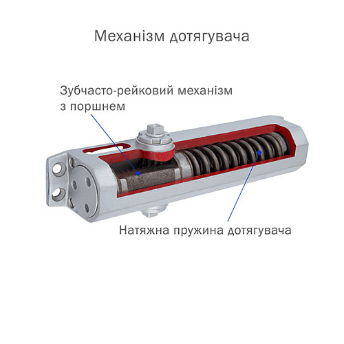 Дотягувач - це пристрій автоматичного закривання дверей. Тому, обираючи його, вам потрібно визначити який тип дотягувача вам потрібен.