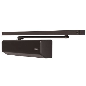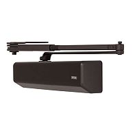 Продукція японського виробника RYOBI по праву визнана в усьому світі завдяки своїй відмінній якості. Дана модель RYOBI D-3554T BC/DA SLD встановлюється накладним монтажем на промислові дверні полотна масою до 80 кг та шириною до 1100 мм. Гідравлічний привід забезпечує чітку роботу дотягувача з кутом відкривання до 180°. Безпосередньо на корпусі є можливість регулювати основну швидкість в межах 180°-10°, швидкість захлопування - 10°-0° та гальмо відчинення - 75°-180°. Дана функція захищає дверне полотно від удару об стіну та виривання тяги дотягувача. Також фішкою цієї моделі є функція уповільнення зачинення. Це зручно, коли проходять багато людей чи потрібно занести вантаж. Загалом завдяки таким можливостям регулювання можна добитись максимально індивідуального налаштування зачинення дверей. Особливістю дотягувачів RYOBI є спеціальне термоконстантне масло. Воно забезпечує стабільну роботу навіть при великому перепаді температур. Взагалі робоча температура варіюється в діапазоні від -20 до +45°С. RYOBI D-3554T BC/DA SLD може бути встановлений на ліво і правосторонні двері з можливістю відкривання як всередину так і назовні. В даній комплектації присутня ковзна тяга без фіксації дверного полотна у відкритому положенні. Проте даний дотягувач сертифікований для використання з протипожежними дверима. В коричневому кольорі найкраще буде доповнювати двері подібних темних відтінків для того, щоб максимально уникнути контрастів та не привертати зайвої уваги.
