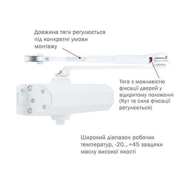 | Тип тяги дотягувача | стандартна з фіксацією | |