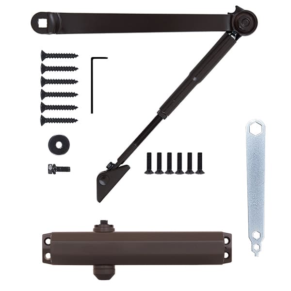 Продукція японського виробника RYOBI по праву визнана в усьому світі завдяки своїй відмінній якості. Дана модель RYOBI DS-2005V BC STD HO встановлюється накладним монтажем на дверні полотна масою до 100 кг та шириною до 1250 мм. Гідравлічний привід забезпечує чітку роботу дотягувача з кутом відкривання до 180°. Безпосередньо на корпусі є можливість регулювати основну швидкість в межах 180°-10°, швидкість захлопування - 10°-0° та гальмо відчинення - 75°-180°. Дана функція захищає дверне полотно від удару об стіну та виривання тяги дотягувача. Завдяки цьому можна досягнути індивідуального налаштування зачинення дверей так як Вам потрібно. Особливістю дотягувачів RYOBI є спеціальне термоконстантне масло. Воно забезпечує стабільну роботу навіть при великому перепаді температур. Взагалі робоча температура варіюється в діапазоні від -20 до +45°С. RYOBI DS-2005V BC STD HO може бути встановлений на ліво і правосторонні двері з можливістю відкривання як всередину так і назовні. В даній комплектації присутня стандартна тяга з фіксацією дверного полотна у відкритому положенні. Це дає можливість залишити двері відчиненими для провітрювання чи для зручності користування у комерційних приміщеннях. В коричневому кольорі найкраще буде доповнювати двері подібних темних відтінків для того, щоб максимально уникнути контрастів та не привертати зайвої уваги.