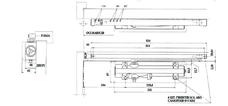 | Вага дверей | до 80 кг | |