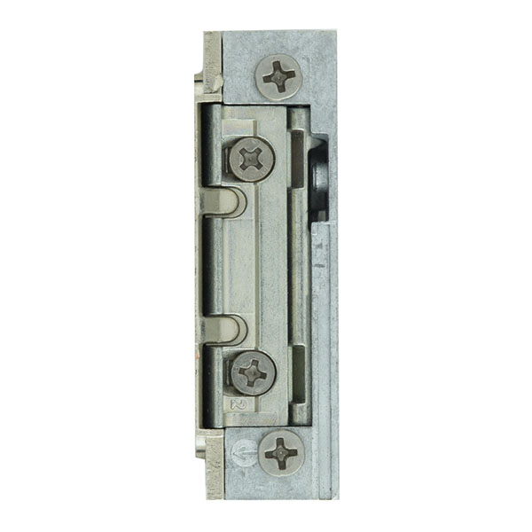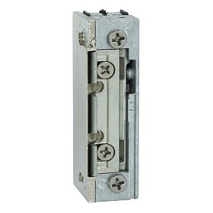 Електрозащіпка працює в нормально замкненому стані. Це означає, що вона замкнена без живлення, а відмикання відбувається поданням напруги. Напруга складає 10-24 В постійного або змінного струму. Має язичок спеціальної радіальної форми, яка при відкриванні зміщується в глибину защіпки. За рахунок цього виріз в рамі під нього потрібен буде мінімальний. Язичок регулюється відносно корпусу з діапазоном 3 мм.